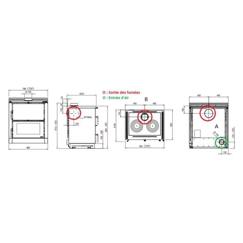 • Uscita fumi: superiore / posteriore / laterale