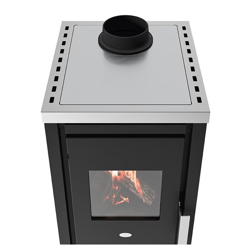 Costruito in acciaio di alta qualità con porta in acciaio e camera di combustione in vermiculite, il Sandra 6 kW consente una combustione pulita ed efficiente. Il sistema di regolazione dell’aria permette di controllare con precisione l’efficienza del riscaldamento, mentre il cassetto cenere rimovibile facilita la pulizia quotidiana. Questo modello combina quindi potenza di riscaldamento e funzionalità in cucina, permettendo di preparare i pasti mentre l’ambiente si riscalda.